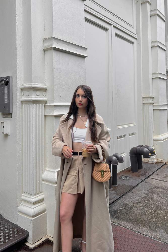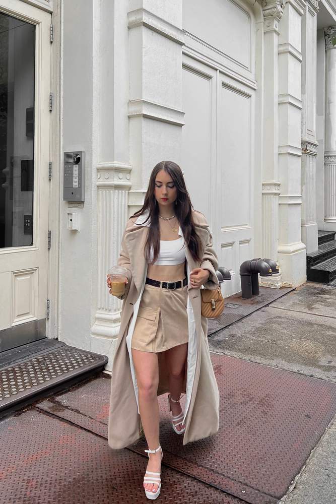Elevate weekend styling with an incredible stone woven extreme micro mini skirt, crafted for fashion-forward statements. This mini skirt measures approximately 33cm/13inch in length. Pair it effortlessly with a white crop top, high heels, socks, and gold accessories. Ideal for a night out, this skirt promises a chic and eye-catching look. Model wears size UK 8 / EU 36 / AUS 8 / US 4 and is 5ft 9inch tall.