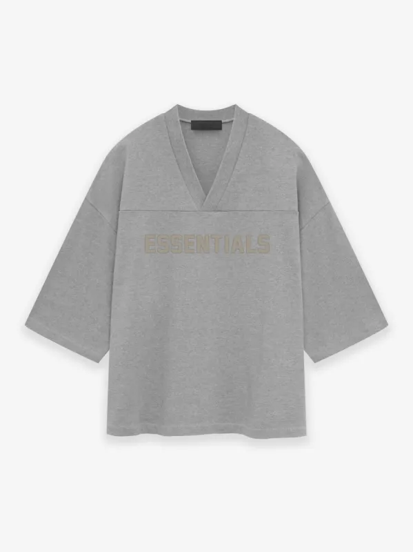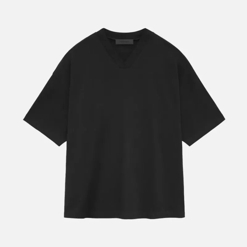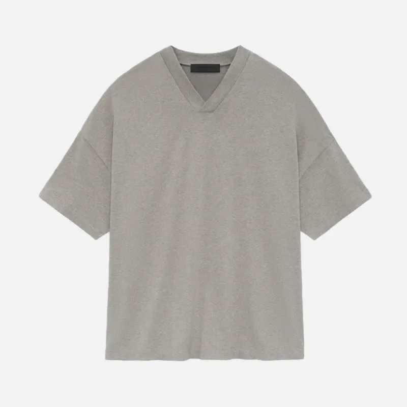 Elevate casual wear with the Essentials V-neck T-shirt, crafted from soft core cotton jersey. Featuring a relaxed fit with dropped shoulders, this garment is designed for comfort and style. A distinctive Essentials Fear of God soft-touch logo adorns the back, while a rubberized label at the collar adds a finishing touch. Ideal for layering or wearing alone, this versatile tee exudes minimalism and contemporary fashion. From the brand: The Essentials V-neck T-shirt is made in core cotton jersey. The rib-knit V-neck fits relaxed in the body with dropped shoulders. An Essentials Fear of God soft-touch logo is across the back and a Fear of God rubberized label is at the back collar.