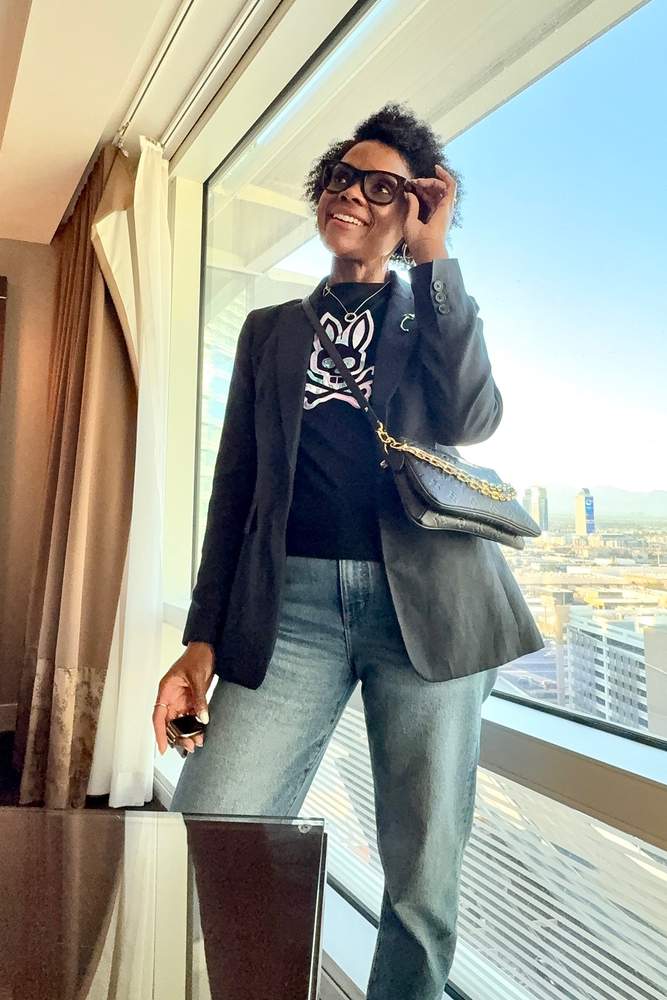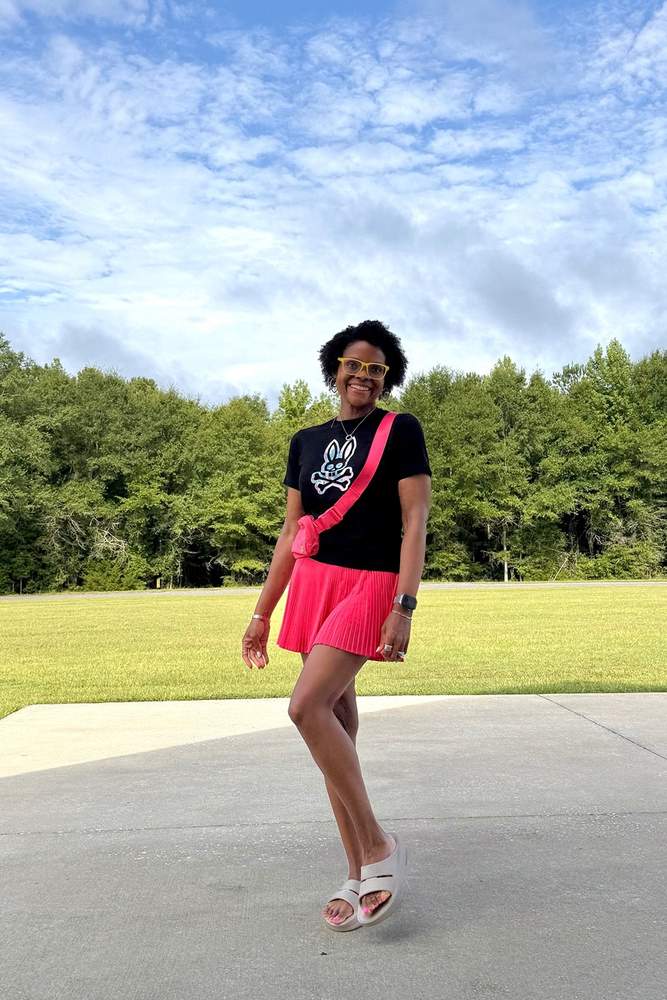 Not the exact shirt I’m wearing but pretty close. They are all great and high quality items. I encourage smaller ladies to just buy the kid tees in L or XL. Save a few coins and get a more fitted look.