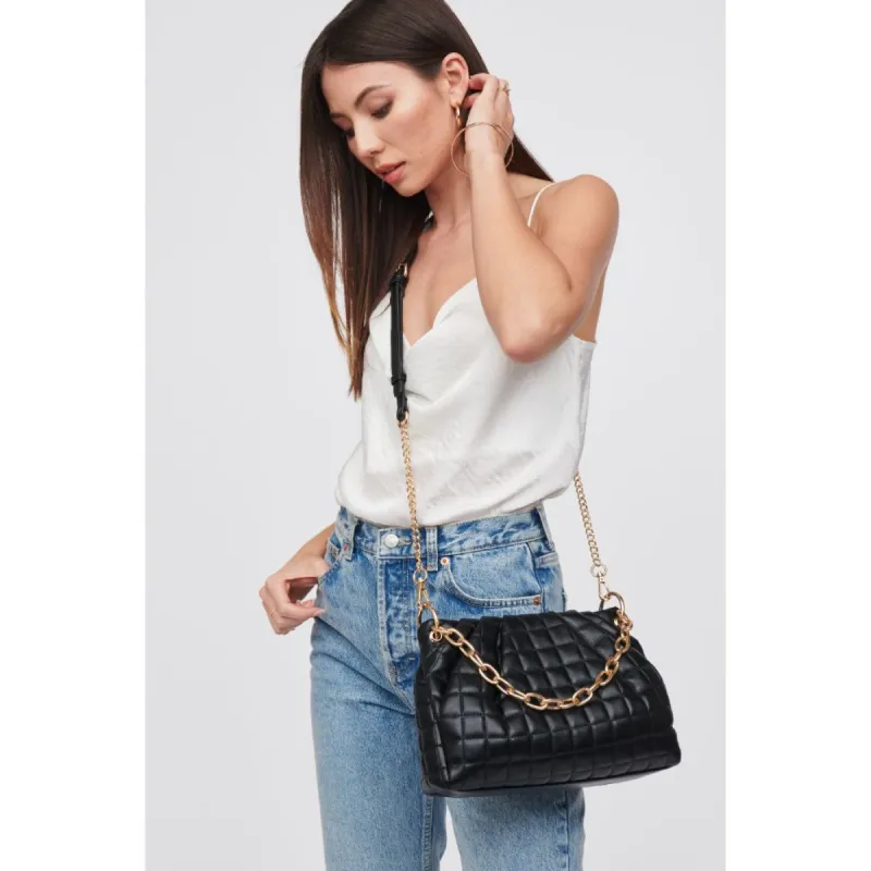 The Jemima Crossbody from Urban Expressions offers a chic and versatile accessory perfect for any occasion. Its stylish quilted design adds a contemporary flair, while the adjustable chain strap provides comfort and adaptability. Crafted with a focus on both aesthetics and function, this bag effortlessly transitions from day to night, making it an ideal companion for those who value both fashion and practicality.