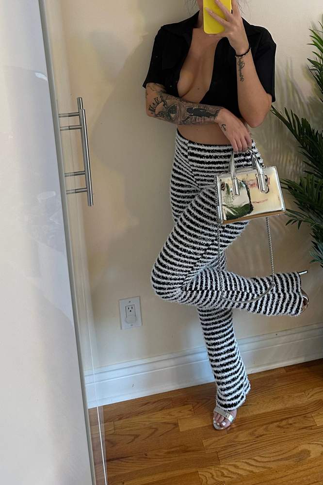 From the brand: Get discounts for Striped Print Fuzzy Trim Flare Leg Pants and find more styles you'll enjoy.✓Students get an extra 15% off.✓Free Shipping on orders over CA$39+