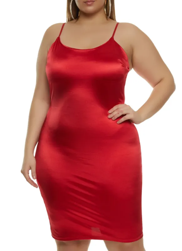 Add a touch of elegance and glamour with the Plus Size Satin Cami Dress in Royal Blue. This dress features a sleek satin finish, adjustable straps, and a flattering scoop neck. The short length and body-skimming fit make it perfect for both casual outings and evening events. Made with a blend of polyester and spandex, it offers comfort and a touch of stretch. Machine washable and easy to care for, this dress is a must-have addition to any wardrobe. From the brand: Plus Size Satin Cami Dress - ROYAL BLUE Details & Fit Cami Dress Short Length Dress Sleeveless Scoop Neck Adjustable Strap(s) Satin Model Pictured Wearing Size 1X Height- 5' 7", Bust- 34DD, Waist- 33", Hips- 47" Fits True To Size Measurements Full Length: 40 inches Content & Care Material: 88% Polyester, 12% Spandex Care Instructions: Machine Wash, Tumble Dry Country Of Origin: China Rainbow Item Number 1390073373517