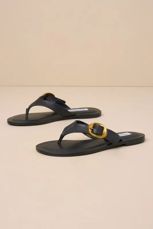 Elevate summer looks with the RAYS thong sandals, featuring a sophisticated buckle detail and structured sole for unmatched comfort. These sandals seamlessly transition from beach days to night outs, adding a touch of luxury to any outfit. Crafted with a leather upper and synthetic components, they offer both style and durability, making them a must-have accessory for warm-weather wardrobes. From the brand: Elevate your summer style with RAYS thong sandals . The sleek design features a sophisticated buckle detail and a structured sole for added comfort. Perfect for a day at the beach or a night out, these sandals add a touch of luxury to any outfit. .5 inch heel height Leather upper material Synthetic lining Synthetic sock Synthetic sole Imported