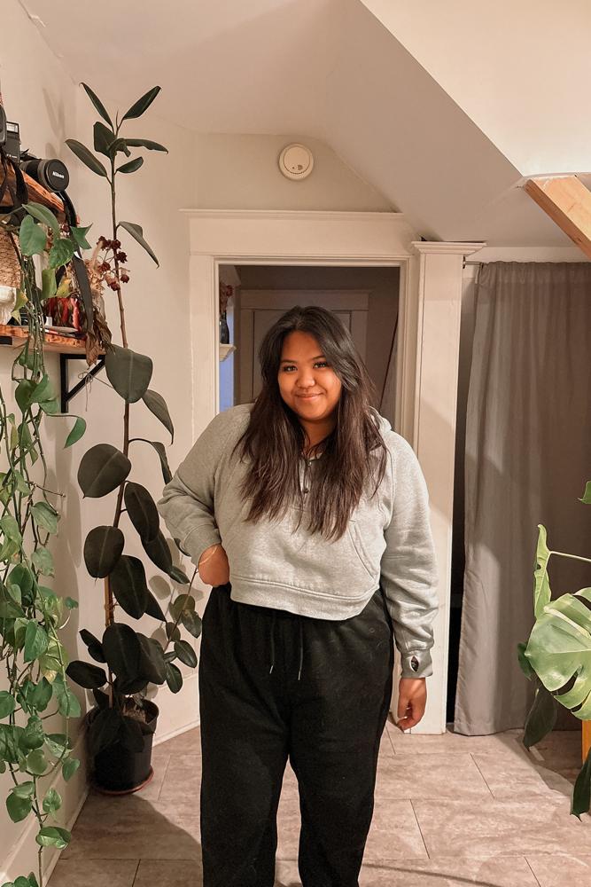 Cozy and cute. Comes in numerical sizing. I bought XS/S which is perfect bc I’m a small usually & this is slightly oversized. Colors change according to stock.
