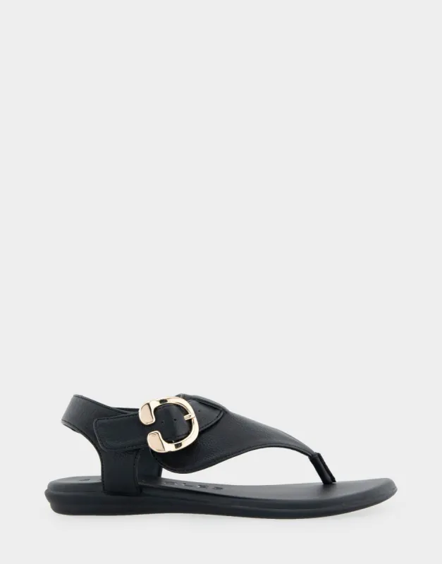 Step into comfort and style with the Isa thong sandal. Featuring a sleek black grainy faux leather design, this sandal integrates a signature diamond flex outsole for enhanced cushioning. The eye-catching buckle hardware and substantial quarter strap ensure a secure fit while complementing a variety of outfits. Perfect for any occasion, these sandals are a must-have addition to a modern wardrobe. From the brand: Introducing the Isa thong sandal � the perfect combination of modern style and comfort! With a signature diamond flex outsole and more substantial quarter strap, you'll feel secure while walking. Plus, the iconic buckle hardware adds an eye-catching touch. Isa Women's Buckle Detail Back Strap Thong Sandal Details: Color: Black Grainy Faux Leather Material: Faux Leather Heel Height: 0.25 Heel Type: flat Closure Detail: Square Toe Shape: Adjustable Buckle/Strap Isa Women's Buckle Detail Back Strap Thong Sandal Features: Designed for Comfort diamond flex outsole Ideal for attire