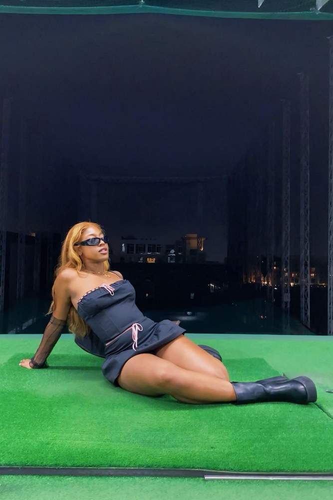 This black mini skirt, adorned with playful pink bow detailing, adds a trendy twist to any wardrobe. Perfect for effortlessly transitioning from casual outings to chic nighttime looks, it embodies a blend of fun and flair. The ruffled hem enhances its playful aesthetic, making it a versatile choice for various occasions. Embrace individuality and style with this eye-catching piece that elevates daily wear and night outings alike.