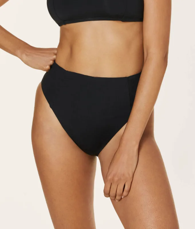 Embrace retro-chic flair with these high-waisted swim bottoms that offer a flattering and curve-accentuating silhouette. The cheeky back features center ruching for an added touch of allure. Crafted from a blend of nylon and spandex for comfort and durability, these fully lined bottoms include a stylish tie waistband with gold aglet detailing. Perfect for making a statement at the beach or poolside. From the brand: The ultimate in retro-chic, ultra-flattering swim style. These high-waisted swim bottoms feature a curve-accentuating silhouette with the added sexiness of a cheeky back. Flattering high-waist cut Cheeky back with center-ruched to accentuate the bum Fully lined in tricot swim material Tie waistband with gold aglet detailing 88% Nylon, 12% Spandex Hand wash cold. Non-chlorine bleach. Hang to dry. Do not iron.