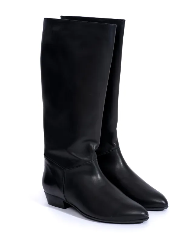 These sleek black boots combine timeless elegance with modern sophistication. Featuring a chic silhouette and a comfortable heel, they effortlessly elevate any outfit. Perfect for both casual outings and formal events, these boots provide versatility and style, ensuring every step exudes confidence. Crafted with quality materials, they promise durability while maintaining fashion-forward aesthetics. Ideal for the trendsetter who values both comfort and chicness, this footwear is a must-have addition to any wardrobe.