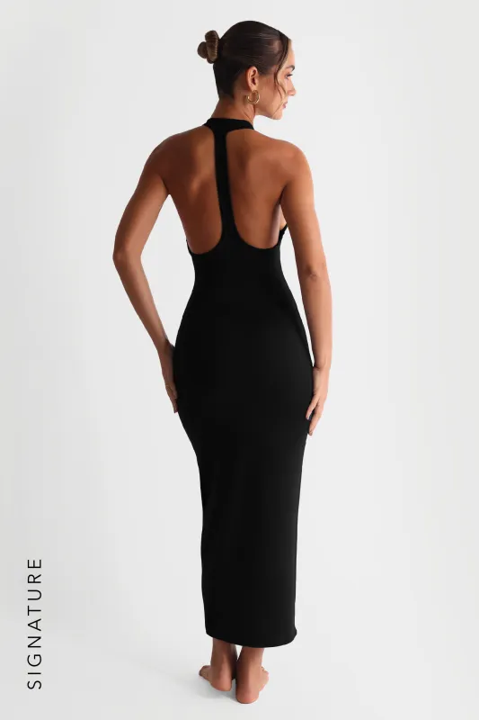 This Racerback Maxi Dress in Black offers a perfect blend of comfort and style for summer outings. Made from soft jersey fabric, it features a flattering fitted design paired with a classic round neckline. Ideal for various occasions, its versatile look can be dressed up or down with ease. With an approximate length of 140 cm, this dress is perfect for layering or wearing solo, catering to different fashion preferences. From the brand: The Aftershock London Racerback Maxi Dress in Black is a summer maxi dress in soft jersey that features a round neckline and fitted design Model is 5ft 8" and wears size S/M Approx. length: 140 cm/55.1in Composition: 95% Viscose, 5% Elastane