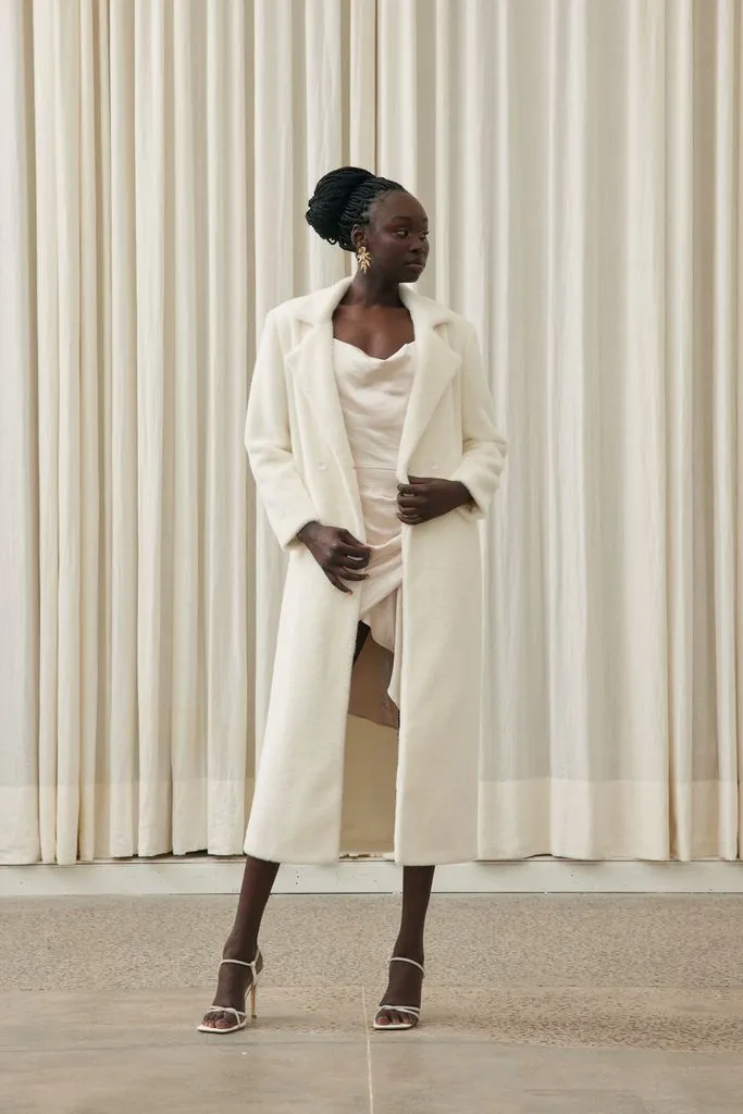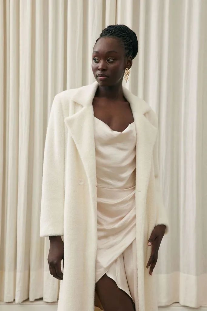 This stunning open front maxi coat offers an elegant silhouette with its notch collar and luxurious faux fur fabric. Crafted from a blend of wool and polyester, it provides both warmth and style, making it a perfect layering piece for various occasions. Effortlessly transition from day to night with this versatile garment, ideal for elevating any outfit while ensuring comfort during cooler months. From the brand: DETAILS - Open front - Maxi length - Notch collar - Faux fur fabric - S: 20% WOOL 80% POLYESTER L: 100% POLYESTER