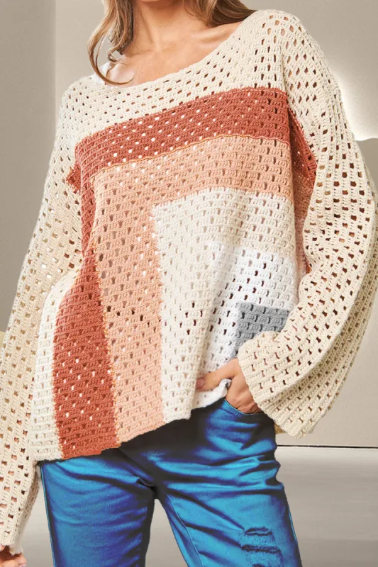Color Block Round Neck Dropped Shoulder Sweater