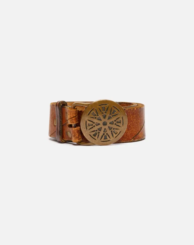 Discover a unique vintage flair with this rare 70s embossed leather belt. Expertly hand-selected for its distinct characteristics, this accessory features a generous length of 42 1/2 inches with adjustable points, ensuring a perfect fit. The eye-catching 2 3/4 inch buckle adds a touch of vintage charm to any outfit. Ideal for those seeking to elevate their style with a statement piece, this belt embodies timeless elegance and versatility. From the brand: An edit of rare leather belts sourced by our expert Marketplace team. Each piece is hand-selected for their unique characteristics that can never be recreated. • 70s Embossed Leather Belt • Length: 42 1/2" • Length To Middle Hole: 36 1/2" • Length To Closest Hole: 34" • Length To Furthest Hole: 39 1/2" • Belt Width: 1 3/4" • Buckle Size: 2 3/4" x 2 3/4" • Fits like a Re/Done size Large Marketplace styles can only be returned or exchanged within seven days of receiving your shipping confirmation email.