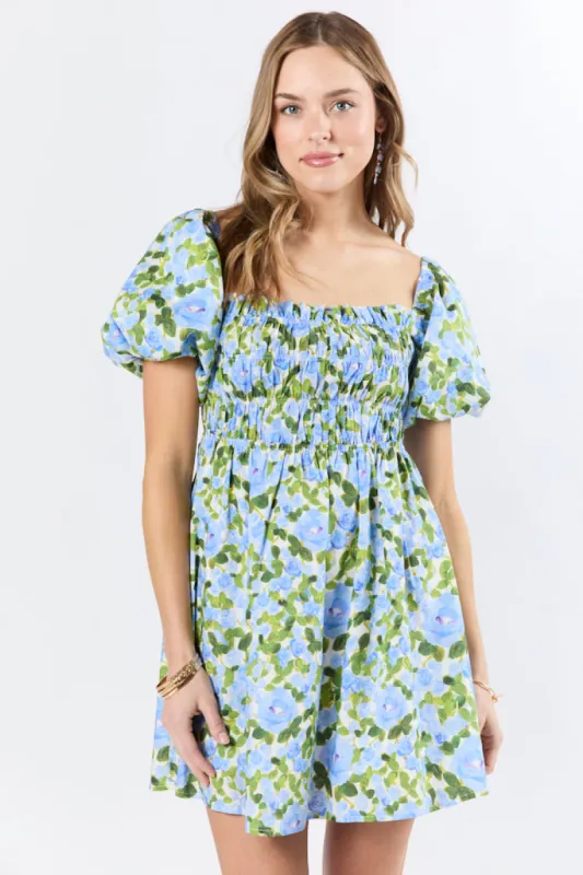 This charming mini dress features a smocked bodice and delightful ruffle detailing, crafted from unlined 100% cotton with an ivory and cream floral abstract print. The ruffled v-cut neckline and short sleeves with ruffled accents add a playful touch, while functional side pockets enhance practicality. Its stretchy waistline ensures a flattering fit, making it perfect for brunch or a stroll. Embrace effortless grace and style with this radiant piece. From the brand: - This adorable mini dress will make your heart skip a beat! Featuring a smocked bodice and playful ruffle detailing, it's perfect for twirling through your day with effortless grace. Whether you're brunching with friends or strolling through the park, this dress radiates that charming energy we all adore. - Unlined 100% cotton material with a ivory and cream colored abstract floral print - A ruffled v-cut neckline - A smocked bodice - Short sleeves with ruffle accents at the shoulders and elastic cuffs - A stretchy waistline - Functional side pockets - A flattering silhouette that ends in a ruffled, mini dress length hemline