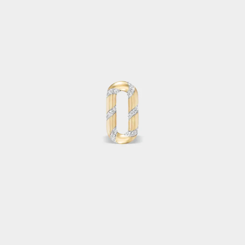 Crafted from luxurious 14k white gold, this small link pendant features a satin finish and is adorned with lab-grown, round diamonds. Measuring 19mm long, it offers versatility, allowing for a vertical drop on a single chain or a horizontal drop between two chains. Stack multiple pendants in various colors for a bold, personalized look that captures attention. Illuminate your style effortlessly with this contemporary accessory, perfect for both casual and formal occasions. From the brand: The small link pendant can be worn as a vertical drop on a single chain, or a horizontal drop between two chains. For a bolder look that's all yours, stack a few in mixed colors. DETAILS Handmade in 14k white gold Satin finish Lab-grown, round diamonds Charm is 19mm long Pair with a single or double 1.5mm Cable Chain .57 TCW: G+, VVS+ Contact custom@fiametta.com for colors not listed here