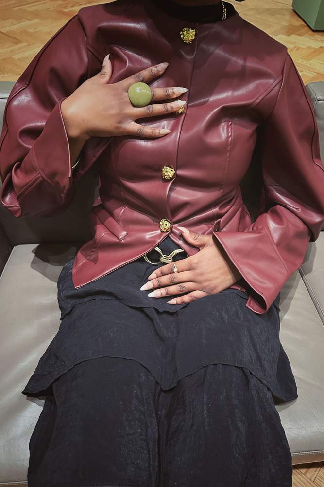 Crafted from sleek faux leather, this fitted jacket effortlessly merges sophistication with modern style. Featuring a structured silhouette and elegant puffed sleeves, it’s perfect for special occasions or adding a touch of flair to everyday outfits. With a length of 21.3 inches, the jacket compliments various silhouettes and pairs beautifully with both skirts and pants. Enjoy low stretch for a tailored fit that enhances the body's natural shape while showcasing a chic, edgy aesthetic.