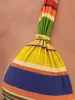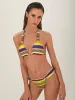 This striped bikini from SWORLD Inc features a classic triangle top with beautiful beaded details on the straps, bringing a bohemian flair to beachwear. The matching cheeky bottoms complement the lively stripes for a playful look. With adjustable tie closures, it promises a customized fit, perfect for fun sun-soaked adventures and stylish beach escapades. From the brand: This eye-catching striped bikini features a classic triangle top adorned with intricate beaded details along the straps, adding a touch of bohemian charm. The matching cheeky bikini bottoms continue the vibrant striped pattern, creating a cohesive and playful look. The adjustable tie closures ensure a customized fit, making this perfect for sun-soaked adventures and stylish beach outings.