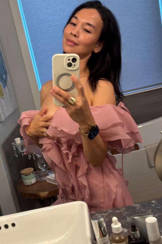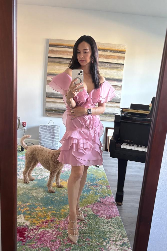 From the brand: Introducing our Dabney V Neck Ruffle Mini Dress, featuring a flattering v-neck design and playful ruffle details. This dress is perfect for adding a touch of romance and femininity to any outfit. Elevate your wardrobe and turn heads with our stunning Dabney dress!
