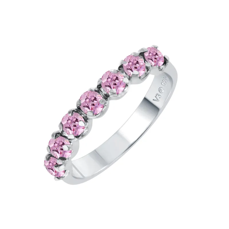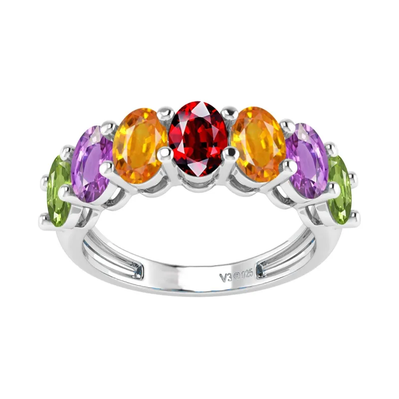 Sterling Silver with Natural Multi Gemstone Seven Stone Band Ring