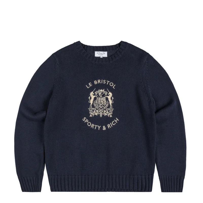 This long staple cotton cable knit sweater showcases a striking tackle twill embroidered logo for a classic yet modern look. Designed for a traditional fit, it offers comfort and style perfect for any occasion. Made from 100% cotton, its rich texture pairs well with various outfits. Ideal for layering or wearing on its own, this sweater effortlessly blends fashion with functionality, making it a versatile addition to any wardrobe. From the brand: Long staple cotton cable knit sweater with tackle twill embroidered logo. Traditional fit. - Fit: Regular - Material: 100% Cotton - Origin: Imported Elijah is 5’10”/140lbs wearing a size large. Designed by Brigade in NYC