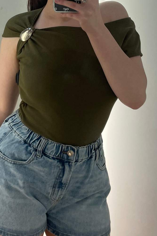 River Island Womens Khaki Short Sleeve Drape Trim T-Shirt