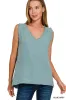Zenana Double Gauze Raw Edge V-Neck Tank