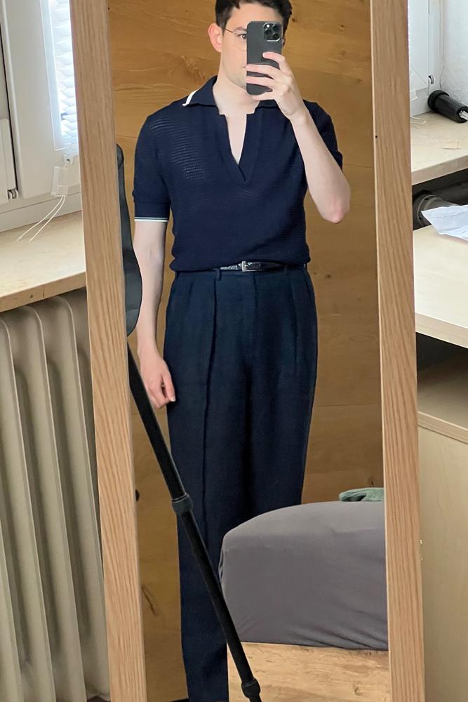 Anfa | Navy Rib Knit Polo