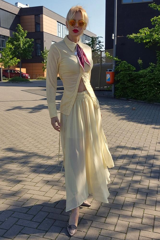 Dear, unfortunately my chiffon shirt is sold out, but I found this one and I think it will go great with the chiffon, I hope you like it too💛