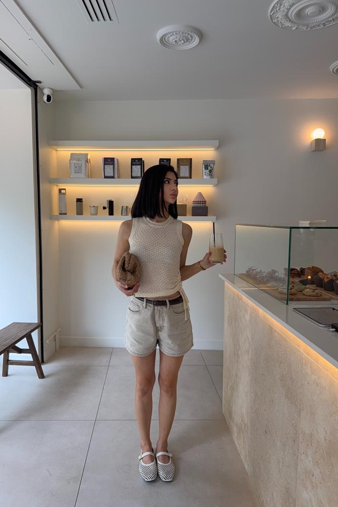 Short mom gris pierre délavé à taille haute, Gris Pierre Délavé