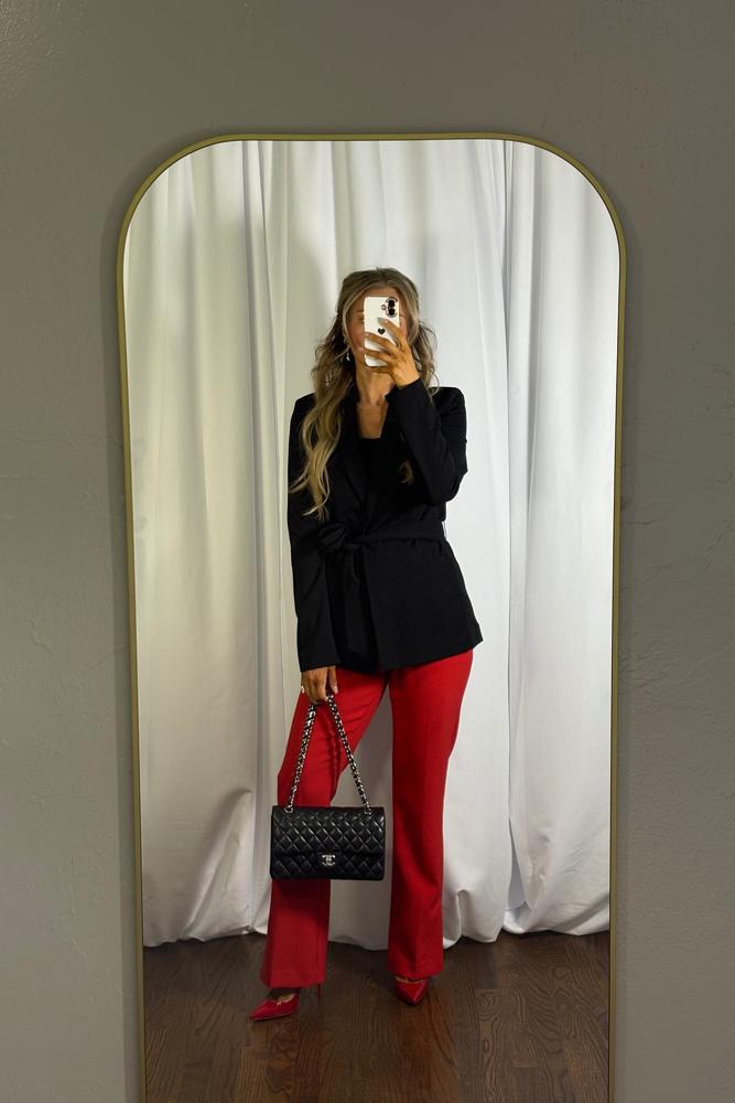 From the brand: Our work uniform has changed a lot in the last three-years, a more relaxed vibe has taken centerstage. Our slip-on blazer fits the current mood. It still has the classic collar and padded shoulders, but instead of buttons, it has a self-belt to customize your fit. Wear yours in-flight, in-office, and off-duty.