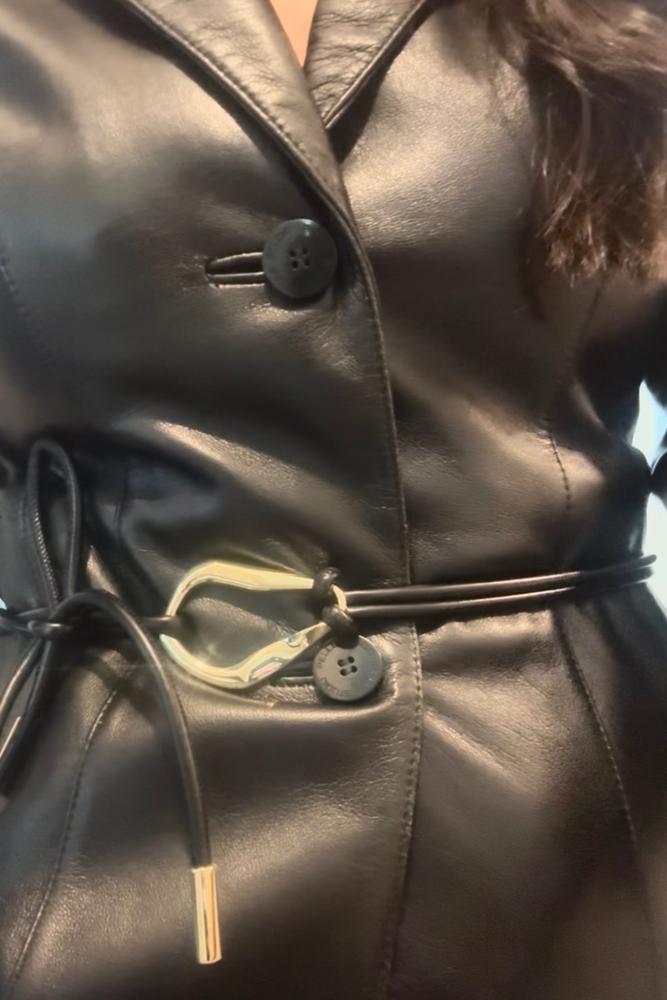 This thin faux leather rope belt is a stylish accessory that enhances any outfit. With a sleek and minimalist design, it offers adjustable length for a perfect fit, ideal for cinching at the waist or hips. Made from high-quality, vegan-friendly materials, it pairs seamlessly with dresses, oversized shirts, or high-waisted pants. Perfect for casual, business, or evening attire, this belt is a versatile addition to any wardrobe, adding a chic modern vibe to every look.