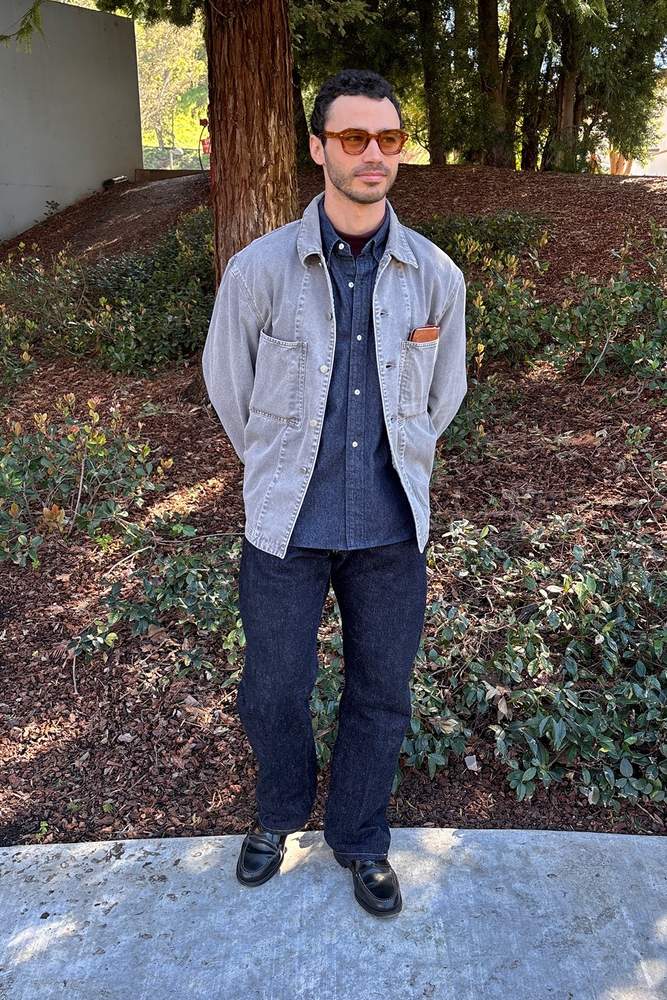 This heather grey workwear overshirt combines functionality with refined style, crafted from medium-weight, garment-dyed denim featuring a unique snowy patina. The softened fabric enhances comfort while retaining structure. Details include a straight cut, shirt collar, metal button closure, and dual chest patch pockets, including a double pocket. Versatile and elegant, this piece is perfect for layering in various environments, seamlessly blending utilitarian design with sophisticated aesthetics. From the brand: This heather grey workwear overshirt by Lemaire is crafted from medium-weight garment-dyed denim with a distinctive snowy patina. The washed finish softens the fabric, enhancing comfort while maintaining structure. Featuring a straight cut, shirt collar, metal button closure, and dual chest patch pockets — including a double pocket — it offers a refined take on utilitarian design. A versatile layering piece, merging functionality with understated elegance. Color: Heather Grey Composition: Main Material: 100% Cotton. Jacron: 100% Cow Leather Care instructions: Machine wash on a cold gentle cycle