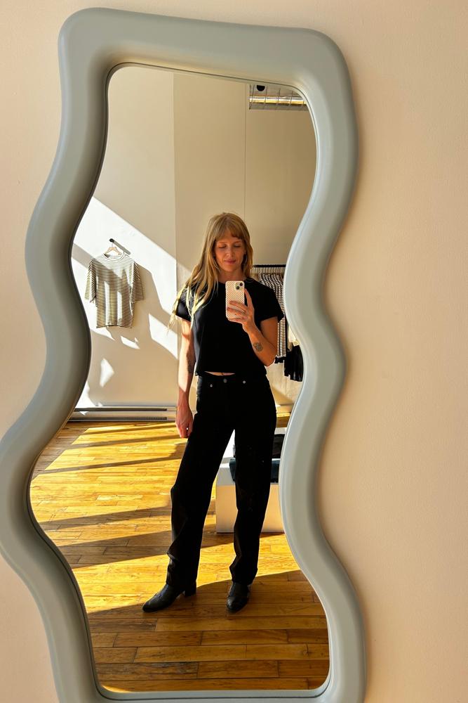 The BROOK crop top returns in timeless black, designed for versatility and comfort. Made from a medium-thickness 2x2 rib fabric with 95% cotton and 5% spandex, this top features a square cut that flatters a range of silhouettes. Perfect for layering under dresses or pairing with skirts, pants, or shorts, it seamlessly complements pieces from any collection. Its flexible fit and stylish simplicity make it an essential addition to any wardrobe. From the brand: DESCRIPTION The BROOK is back in black! Many of you loved it, and we are delighted to bring it back. This piece is short, stretchy, of medium thickness, and has a square cut. It's comfortable enough to be worn with various types of clothing, such as skirts, pants, shorts, under dresses, and jumpsuits. Its neutral side allows you to pair it with all pieces from our new collection or items from previous seasons. Now that we've covered the basics, what colours should we bring up next? DETAILS 2x2 rib 95% cotton, 5% spandex (Montreal) Made in Montreal, Canada FIT The model measures 5'5"/167 cm and is wearing size S Straight fit, short length Click above add to cart button for flat measurements of this style Find your size ! GARMENT CARE Hand wash cold water, dry flat, low iron