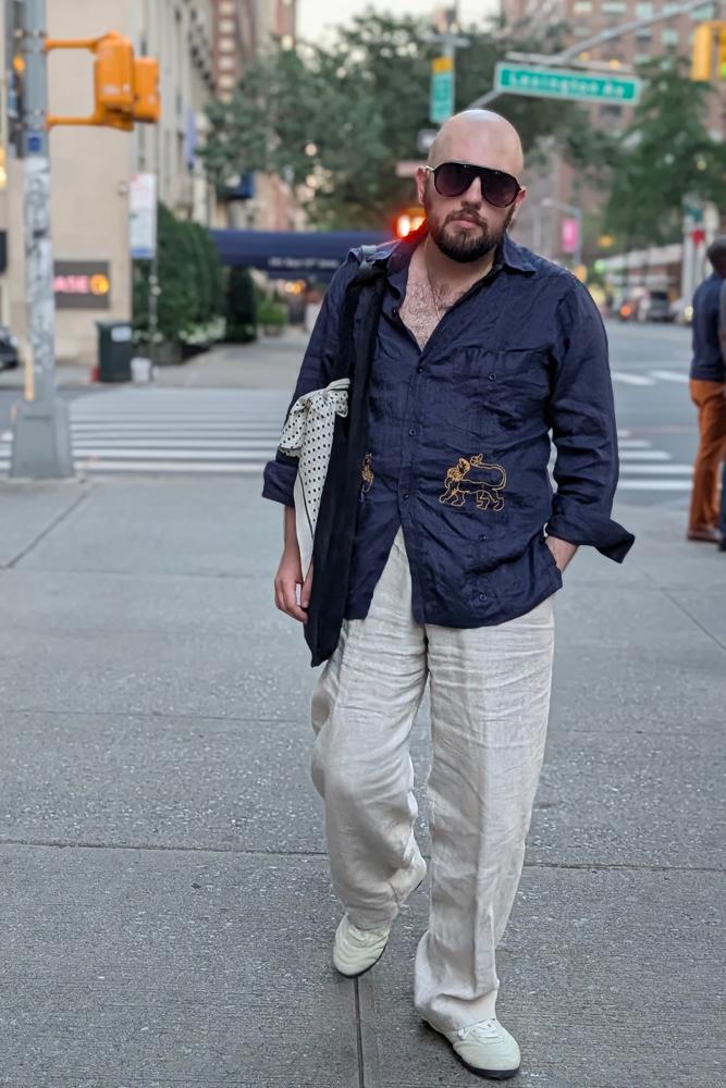 Details: Tubular logo detail on arms
