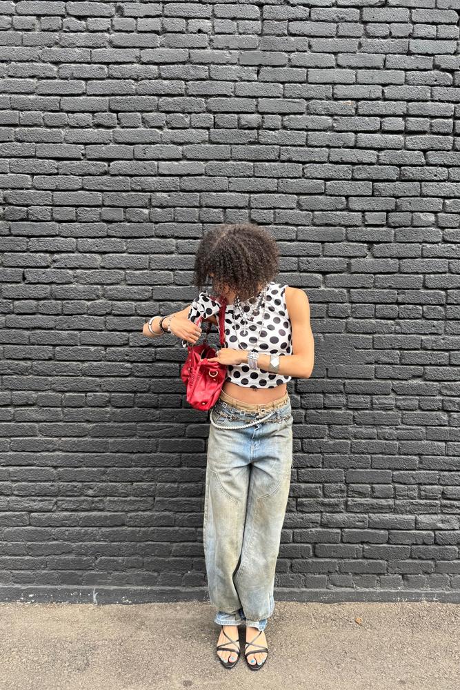 Obsessed with these jeans! They’re super baggy and high waisted, and honestly feel like a perfect dupe for those Acne Studios ‘dirty’ jeans everyone’s been into😍. They have that worn-in, grungy vibe but still feel elevated!