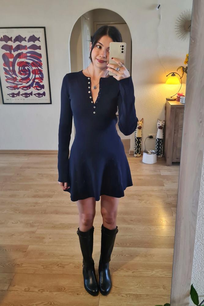 Fits true to size, the fabric is quite thick so it holds up shape well. Really flattering.