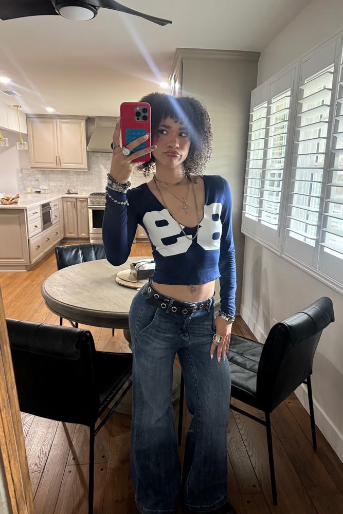 This long sleeve crop top from Sumwon features a striking contrast panel design, perfect for those seeking a fresh and trendy addition to their wardrobe. The bold graphics and fitted cut highlight femininity while ensuring comfort and style, ideal for both casual outings and going out. Pair it with high-waisted jeans or a skirt to create an effortlessly chic look that stands out.