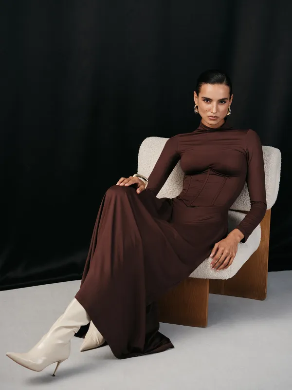 Experience elegance with this stunning long sleeve maxi dress, crafted from soft jersey fabric featuring a square neckline. The slim fit design ensures a flattering silhouette while the high stretch material guarantees comfort and ease of movement. Ideal for both casual and semi-formal occasions, this dress transitions effortlessly from day to night, making it a versatile addition to any wardrobe. Perfectly paired with heels for a chic look or dressed down with sandals. From the brand: Details Composition : 89% Lyocell, 11% Elastane Thickness : Regular Material : Jersey Sleeve Length : Long Sleeve Neckline : Square Neck Size & Fit Dresses Length : Maxi Stretch : High Stretch Fit Type : Slim Fit Cm Inch Size US Shoulder Bust Waist Hips Sleeve Length XS 2 13.6 27.2 23.6 31.5 25 56.5 S 4 14 28.7 25.2 33.1 25.4 57.1 M 6 14.4 30.3 26.8 34.6 25.8 57.7 L 8/10 15 32.7 29.1 37 26.2 58.3 XL 12 15.6 35 31.5 39.4 26.6 58.9 XS 2 34.5 69 60 80 63.5 143.5 S 4 35.5 73 64 84 64.5 145 M 6 36.5 77 68 88 65.5 146.5 L 8/10 38 83 74 94 66.5 148 XL 12 39.5 89 80 100 67.5 149.5 Care Instructions Maximum washing temperature 30°C/86°F Do not bleach Wash with similar colors Iron at a maximum of 110°C/230°F Do not dry clean