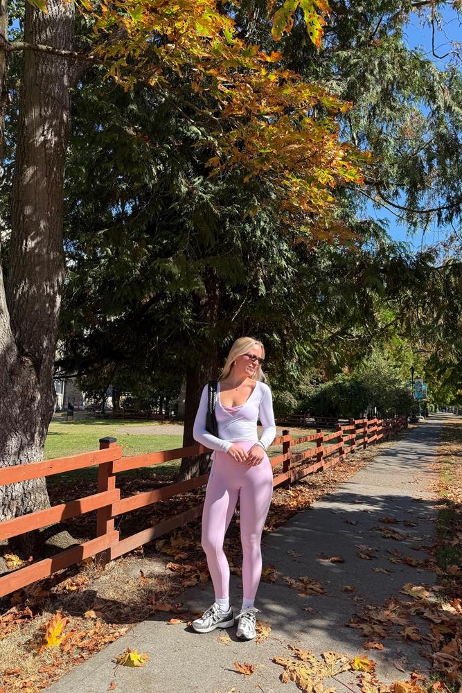 From the brand: The girlies who get it, get it. This petal pink medium support bra is the epitome of pilates-core. Designed with ruching in the front, a low scooped back, and adjustable straps, it’s flattering, functional, and your new favourite girly piece to throw on. The kind of piece that feels light for class and layers effortlessly for post-class matcha.