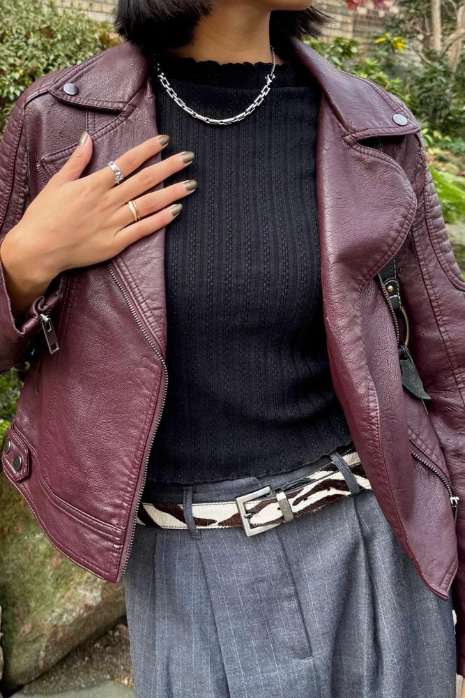 Perfect Stranger Kandice PU Zip Up Jacket Burgundy