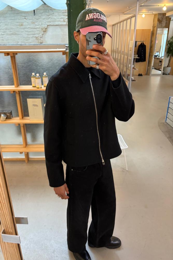 Crafted from a luxurious cashmere blend, this Alesis jacket offers both warmth and softness, featuring a relaxed fit with dropped shoulders and straight sleeves. Finished with a sleek silver two-way zipper and convenient handwarmer pockets, it provides a chic silhouette that effortlessly complements any wardrobe. The elegant doubleface fabric, woven in China, enhances its refined appeal, making it an essential addition for both casual outings and elegant occasions. From the brand: Made in China Made in a gloriously soft cashmere blend doubleface cloth that's both lightweight and warming. Finished with elegant low profile seams, possible due to the fine splittable doubleface wool weave. The Alesis jacket is designed with slightly dropped shoulders, straight sleeves and a relaxed, boxy body. Its shorter length ending precicely at the hip. Finished with a silver two-way zipper and handwarmer pocktes at the waist. Details - 90% wool, 10% cashmere - Doubleface splittable fabric woven by Taian Fanzhen, China - YKK two-way sillver zip - Handwarmer pockets at the waist - Manufactured by Forever Intl, China