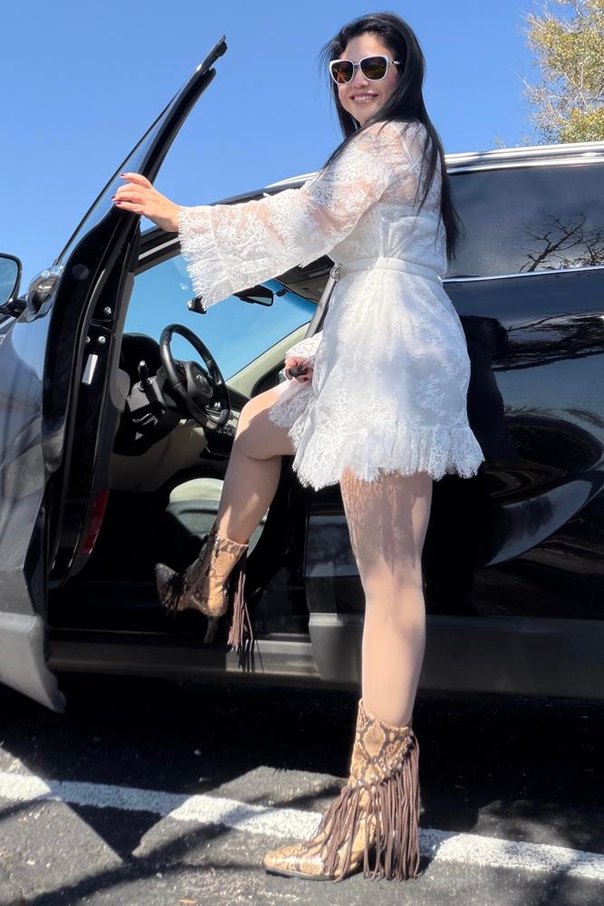 This dress is absolutely stunning! The lace detailing is delicate and feminine, and the ruffles add such a playful touch. It fits perfectly and hugs the body in all the right places while still being super comfortable. The white color is classic and versatile, perfect for everything from brunch to a night out. I love how it’s both elegant and fun at the same time. Definitely a must-have!