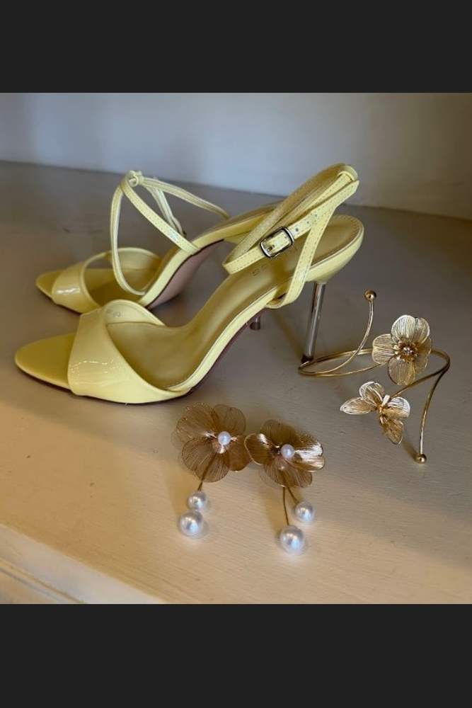 The Annabeth Faux Patent Pointed Toe Heels in yellow are bold and stylish. With their sleek patent finish and sharp pointed toe, they’re perfect for adding a pop of color to any outfit. Comfortable yet eye-catching, though you might need to wait for a restock!