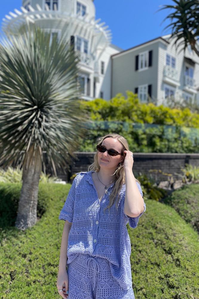 These knitted shorts feature a charming design with playful scallop edges, perfect for adding a touch of retro flair to any outfit. Designed for comfort, the elastic waistband with tie allows for a customizable fit, making them ideal for vacation lounging or casual outings. Crafted from 100% cotton, these shorts are breathable and stylish. Pair them with their matching shirt for a complete look that radiates fun and effortless style, perfect for any warm-weather occasion. From the brand: Comfort calls for these knitted shorts! In the prettiest knit design with scallop edges these shorts are the perfect mix of fun and retro. Pair with the matching shirt for vacation vibes no matter where you are. Knitted shorts Elastic waistband with tie Lined Fabric details: 100% Cotton Model information:Model is 175cm and wears size SColour: Paradise BlueDesigned in Torquay, AustraliaItem # WSHW9PDBE0000