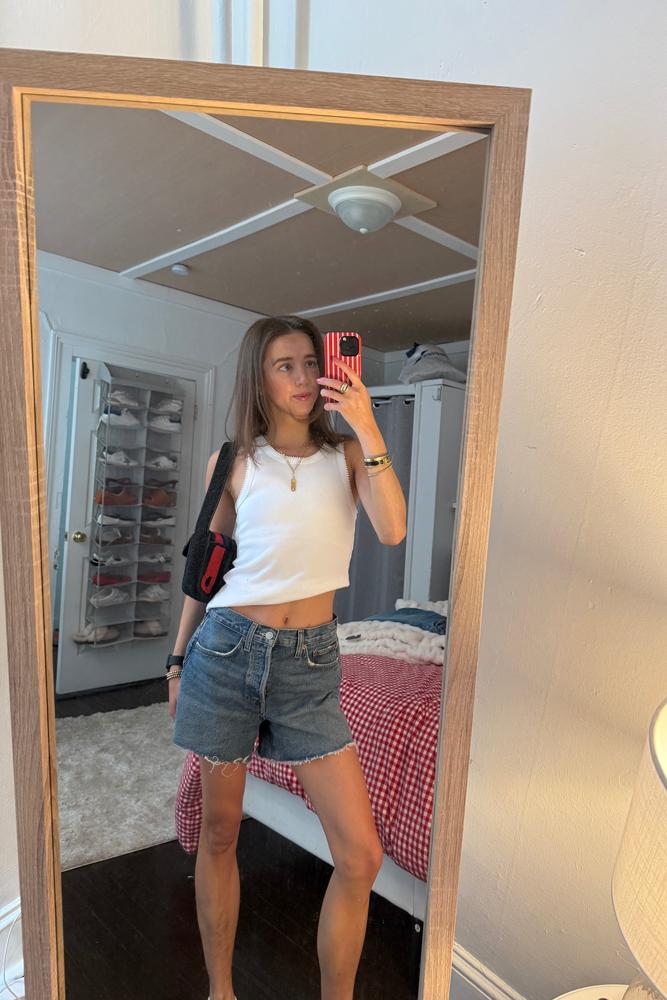 From the brand: Fitted ribbed vest top embellished with small beads on the neckline and sleeve outline.