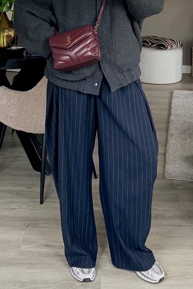 Elevate any ensemble with these stylish wide-leg trousers featuring a classic pinstripe design. The low-rise fit and functional pockets combine comfort with chic sophistication, ideal for both casual and formal occasions. Belt loops allow for versatility with styling options. Perfectly tailored, this piece enhances silhouette while providing ease of movement. Pair these pants with a fitted top or structured blazer for a polished look that transitions seamlessly from day to night.