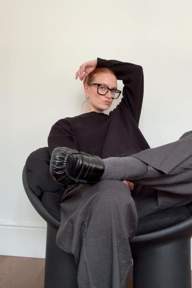 The Aven loafers are crafted from black leather in a penny loafer design with gathered edges along the apron for added texture. Set on low stacked heels with slim rubber soles, they feature a slip-on construction and clean side panels that keep the silhouette streamlined.