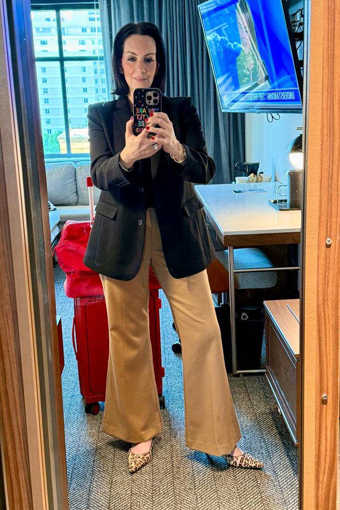 Step into the 2000s with these chic mid-rise flared pants, designed for a flattering silhouette. Made from a smooth wool-blend, they offer comfortable stretch while maintaining a sleek appearance. The barely-there waistband ensures a contemporary edge. Perfect for both casual outings and more polished events, these pants are versatile enough to pair with a variety of tops. Elevate any wardrobe with this stylish blend of nostalgia and modern fashion.